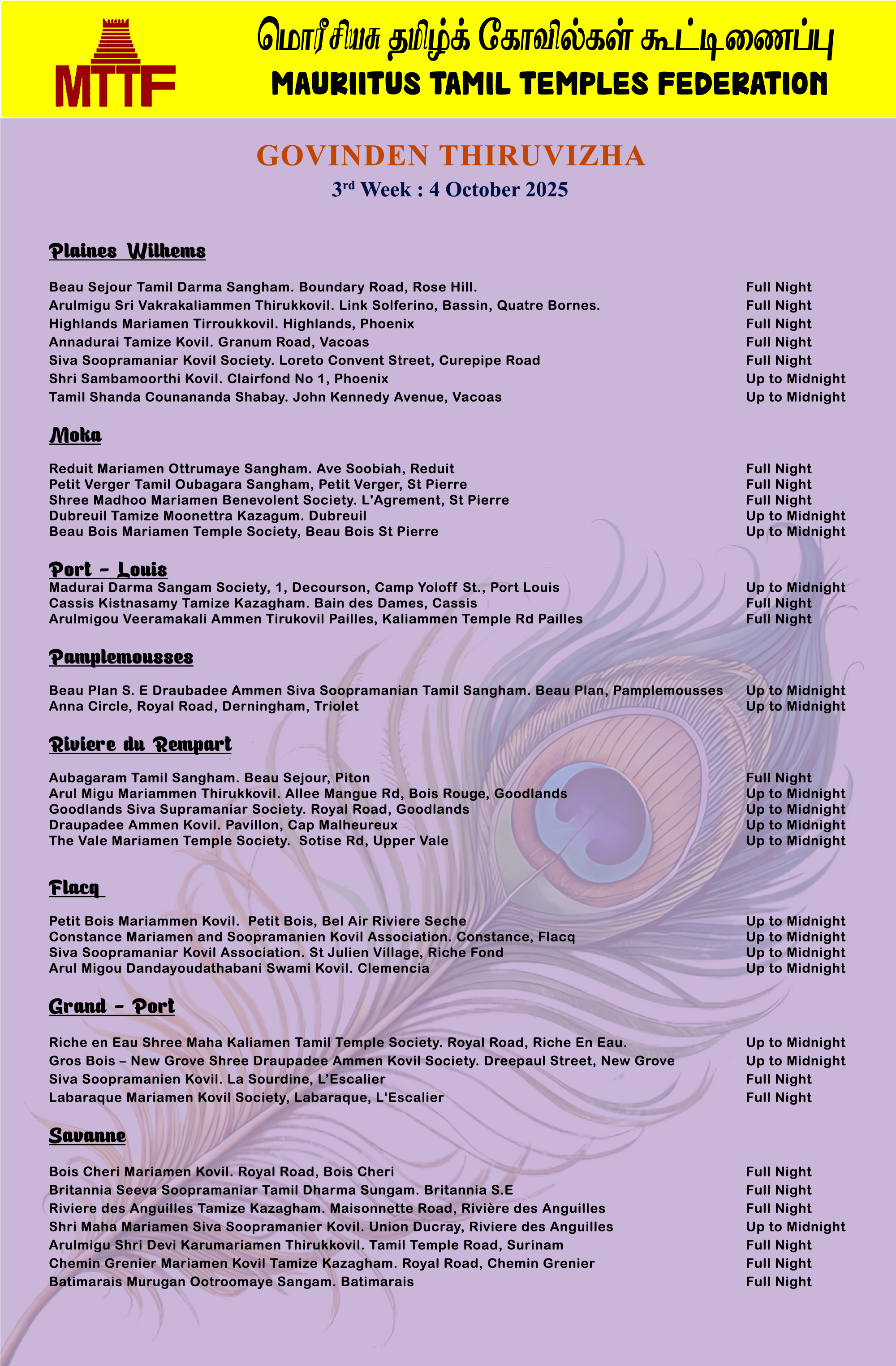 List of Kovils and Associations celebrating Govinden Thiruvizha_2025